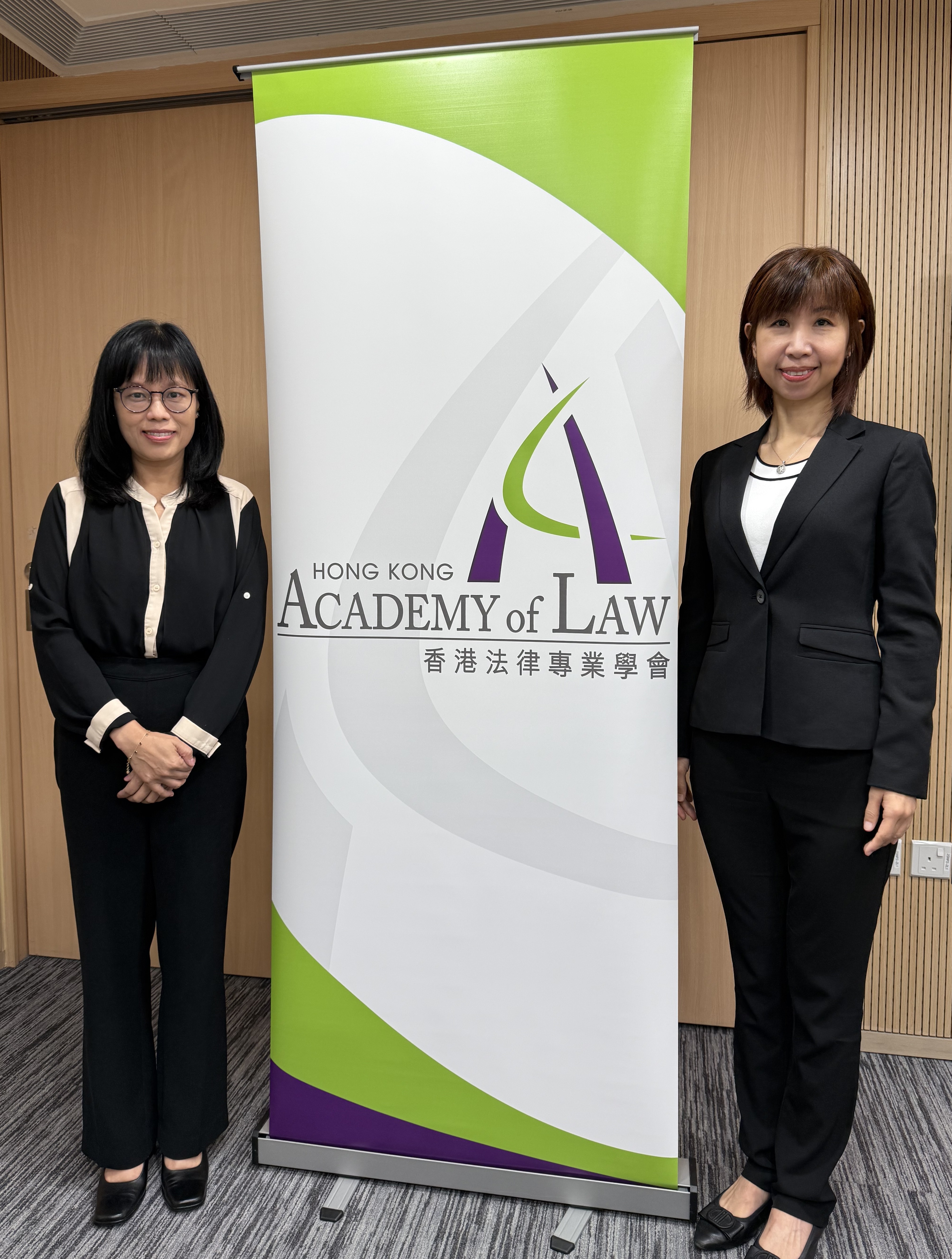 二零二五年九月三日,助理首席法律援助律師(九龍分署)錢江江及署理助理首席法律援助律師(刑事)羅彩蓮在香港法律專業學會舉辦的訓練課程中,向律師講述法律援助計劃的最新發展。