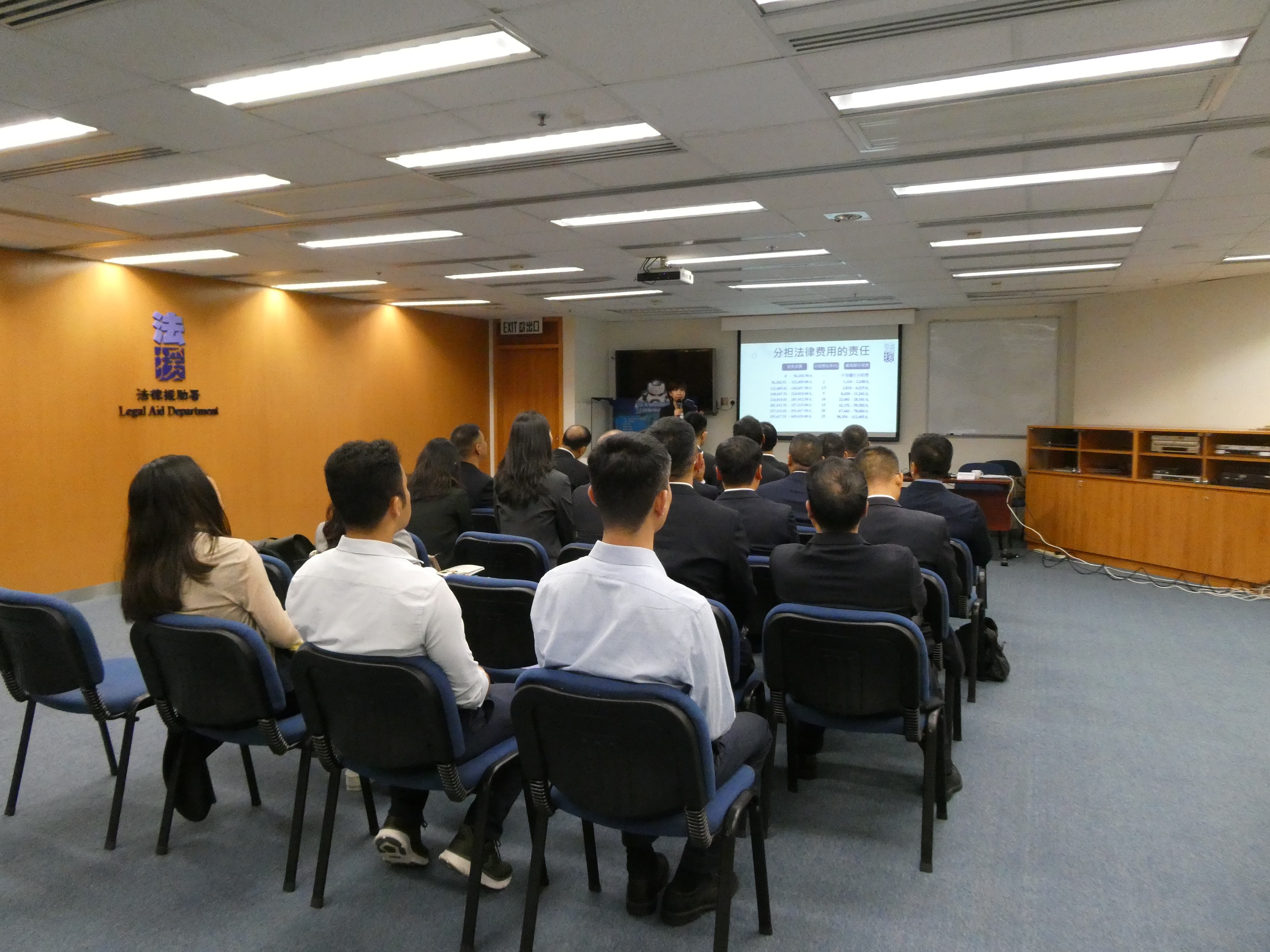 二零二五年三月二十四日,助理首席法律援助律師(刑事)劉嘉駿在香港大律師公會舉辦的培訓課程中,向二十多位大律師講解有關刑事訴訟法律援助的事宜,包括申請法援的權利、經濟審查及案情審查。