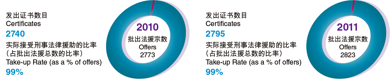 在二O一一年,本署共接获20 368宗法援申请,并批出11 092张法律援助证书: