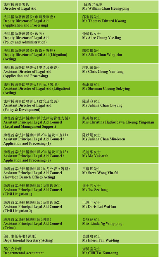 法律援助署署长及各组别主管(截至二〇一二年十二月三十一日)