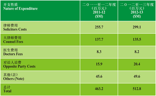 注:这些开支包括土地及公司查册开支、法庭费用及讼费评定费用、讼费拟备人员费用、专家费用、影印费用、银行费用及杂项开支。